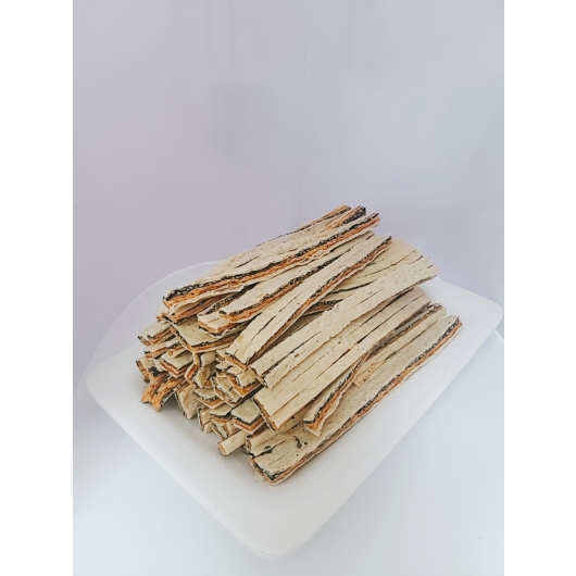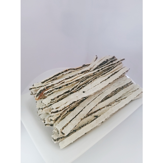 新鮮魚漿與小麥粉拌製而成後,加入微辣不嗆口的海苔絲.