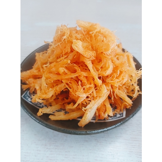 由新鮮魷魚特製而成,加上煙燻香味讓魷魚絲有加有層次